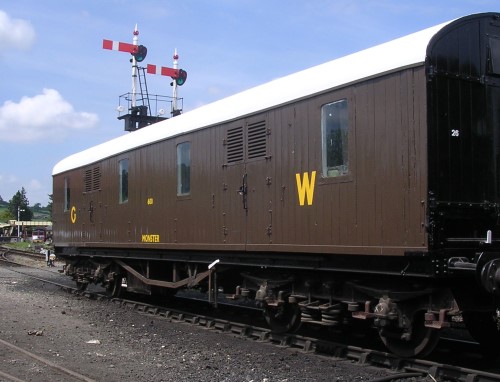 'Monster' scenery van (now exhibition van). W 1978. P 06/1979, Bluebell. Bogie, end doors. For sale since 09/03. To Swindon & Cricklade, by 02/06 and to Heritage Engineering Ltd at Swindon by 01/07, then to Gloucs Warks by 04/08. Restoration completed July 2013 (see additional photo below). 09/16: at Winchcombe. |