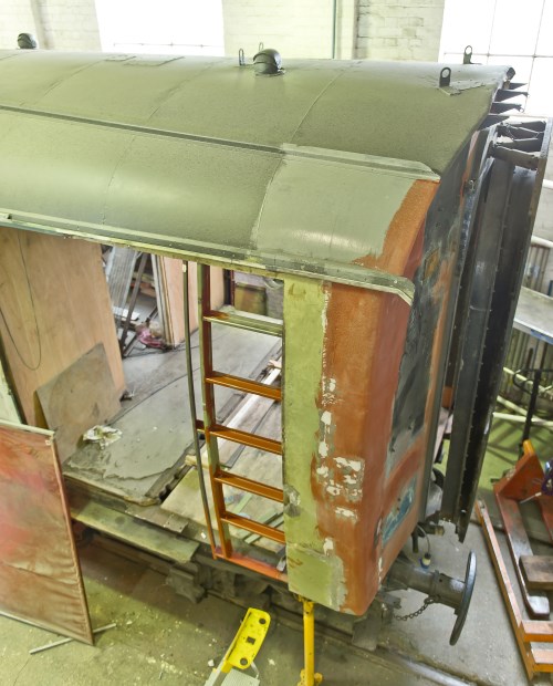 P 1987 at Dean Forest, volunteers' dormitory by 1993, sold 1995 and at Thingley Junction, Chippenham, till resold 1996 - Yeovil County Railway, Yeovil: to Stratford & Broadway by 05/99. By 06/08 restored and operational. From Long Marston Exchange Sidings to Mid-Norfolk Railway by 12/11. To Gloucs Warks 04/15. 04/17: refurbishment in progress including adaptation work to create accessibility area - see first additional photo. 02/18: outshopped in BR Maroon livery - second additional photo shows completed accessibility area. |