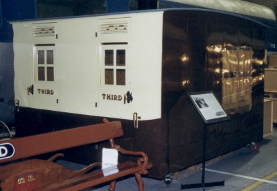 Date uncertain: 1865 also suggested. Broad gauge. Grounded Grampound Road as gangers' hut after 1892. P 1977: section of two compartments restored for Museum display. Now in NRM 'Warehouse'. Considerable rebuilding has been necessary. By 08/16: at Science Museum store, Wroughton near Swindon. |