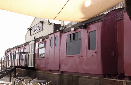 P 1986. With 4751. 80% of one side and part of roof missing. Door added to other side, windows replaced. Essentially a hollow shell. Repainted Green/Cream 2004. By 4/11 'The Rattler Restaurant'. |