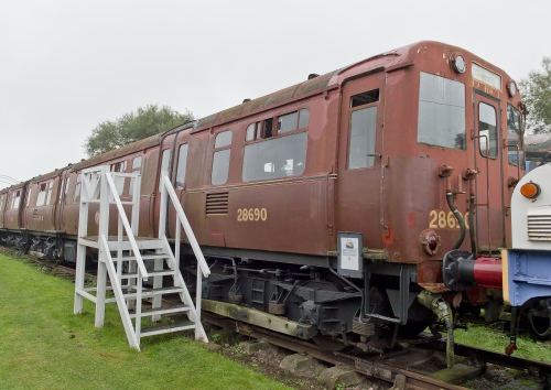 650 v 3 rail. P 91 Wirral Borough Council as 'Ivor T Davies GM': BR Kirkdale until in 1996 to Mersey & Tyneside Electric Preservation (MATEP) and to Steamport; Coventry by end of 1999. Much of interior stripped, stored within. U/frame gear largely complete. Displayed with 29720 and 29289 (qv) - owned by Heritage Electric Trains Trust. 09/16: noted that appears to have suffered a small upholstery fire within area/compartment near cab just above number. 30/05/2018: following closure of Electric Railway Museum at Coventry, now located at Locomotive Storage Ltd site at Westwood, Margate (part of Hornby works, being planned for a future public railway heritage attraction to be called the One:One Collection). 03/24: moved from Margate to Cambrian Heritage Railways, Llynclys: Heritage Electric Trains Trust has decided to retain this vehicle to tell the story of Class 503 EMUs but to scrap the other two vehicles in the unit, 29289 and 29720 (qv), after recovering useful components, unless new homes can be found. |