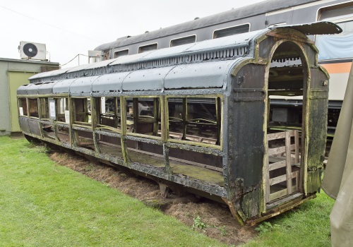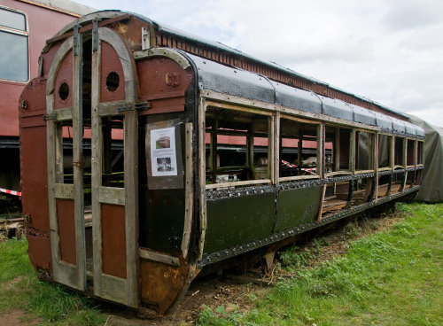 600v centre rail. Oldest all-steel coaching stock to survive? Monitor roof. 1926: sold privately for use as holiday accommodation at East Molesey, near Hampton Court. Body P 1974 by London Underground Railway Society and moved from East Molesey to LT Ruislip Depot. Donated to Electric Railway Museum, Coventry (SERA) and there by 02/00. 06/18: to London Underground Depot at Neasden on closure of Coventry site: by now framework and chassis in reasonable state of repair but rest in very poor condition and beyond rescue. 07/21: cut up on site, following detailed photographic recording and investigation of the remaining fabric. |