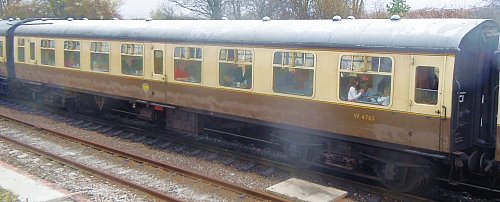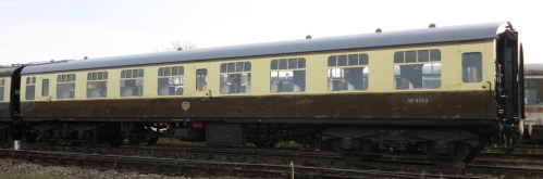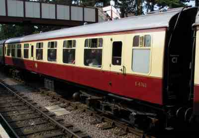P 1987 Paignton & Dartmouth Railway. To GWSR by 3/04. B1 bogies. By 5/08 fully operational after overhaul, in BR Carmine and Cream livery (see below). 12/10: reported in workshops for repaint into Chocolate and Cream and smartening up for 2011 season. 10/17: returned to operational use following repaint. |