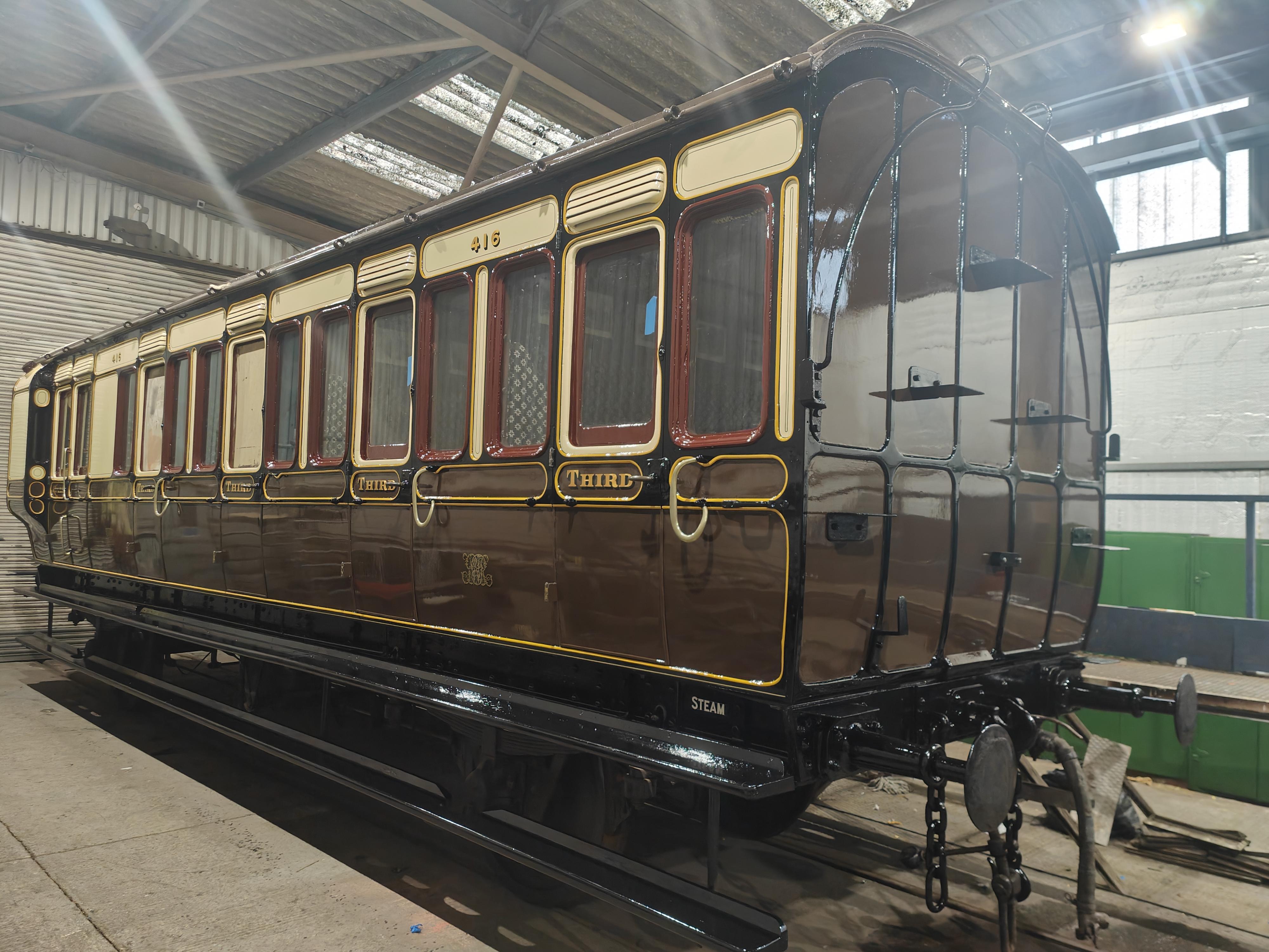 Became Camper some time 1935-9. P 1968, reportedly by Somerset Railway Museum. Now part of Didcot's collection.. Only surviving Dean Brake Third on original underframe. External communication cord apparatus being reinstated (including wheel in Brake). Restoration completed by 05/10. 01/26: full repaint in GWR 1903 livery completed. |