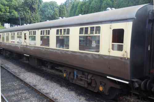 Commonwealth bogies. P 1994 by Rail UK, at Carnforth till sold 1995 to Riviera Trains and to East Somerset, then Crewe. Seat covering renewed in blue/grey traditional style. Centre doors locked off. To West Somerset 03/02. Chocolate & Cream livery. |
