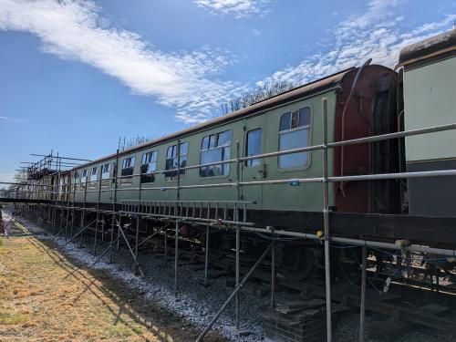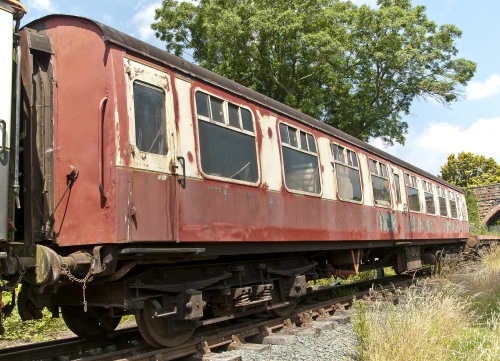 P 1989 ex West Highland set. BR crimson lake and cream livery. Great Central Railway. To Cambrian Heritage Railway, Llynclys 04/05. 08/06: repairs to the bodywork have begun. 10/22: restoration of interior (latterly used for storage) now in progress. 06/25: restoration of exterior continuing. |