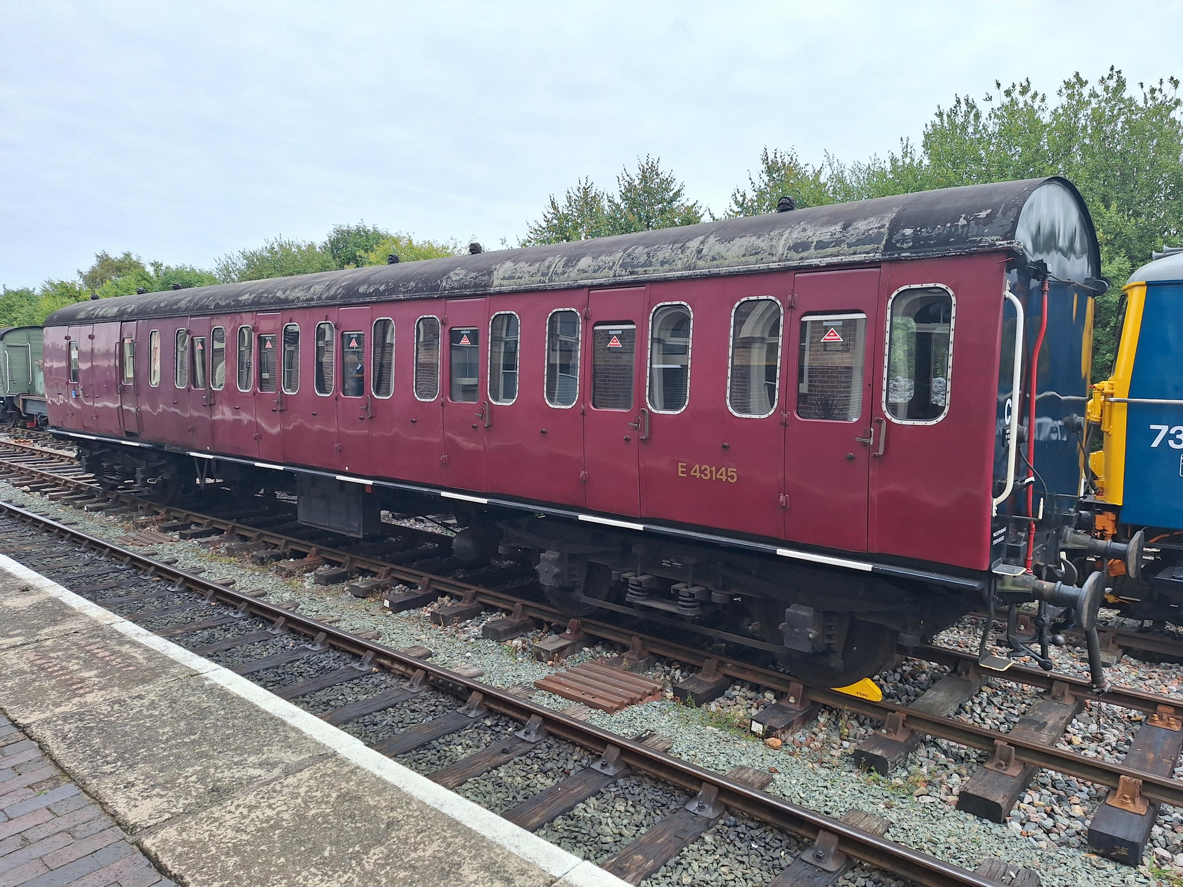P mid 70's. Modified lighting (BR): modern window surrounds. Refurbished 1996 but by 12/12 had been OOU for some time and deteriorating. 12/17: purchased from Keighley and Worth Valley Railway by Cambrian Heritage Railways. 01/18 moved to Oswestry to prepare it for return to operational use. |