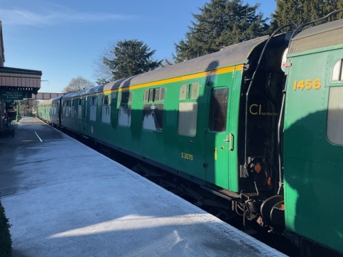 Built for Southern Region. P 1982 Mid Hants Railway. Used for the 'Watercress Belle' dining train in pseudo Pullman livery. Privately owned by an individual 1987 to 1996, then by the 'Belle Group' (a group of Shareholders). By 01/23: livery changed to BR(S) green. |