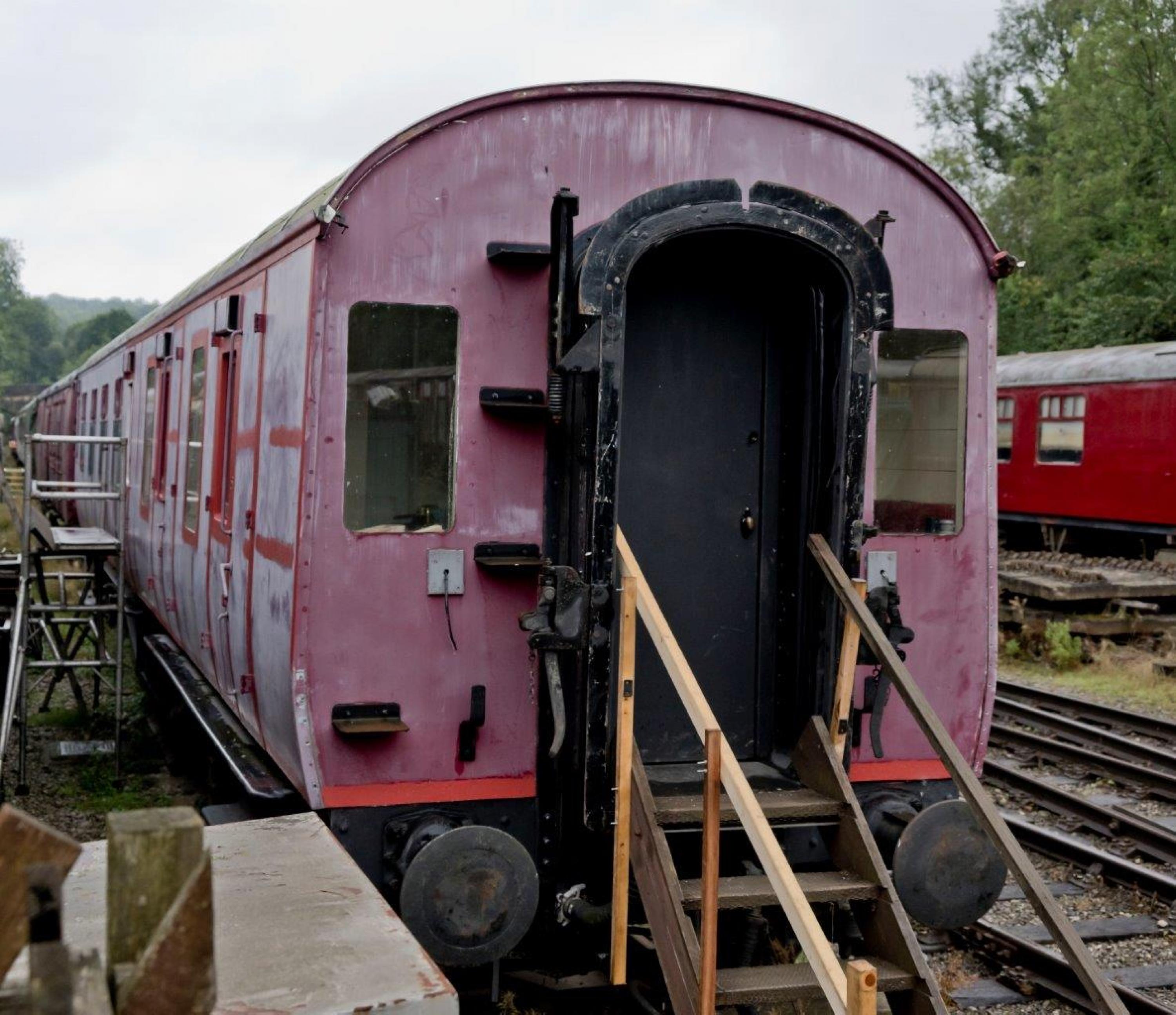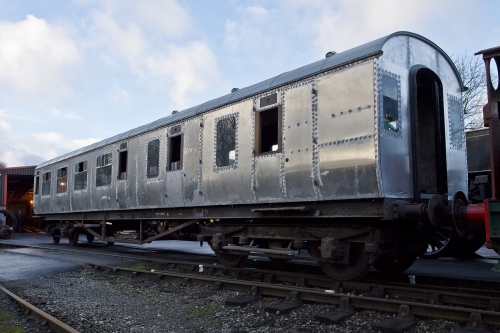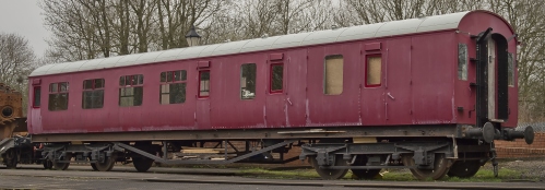 P 1987 privately from Crewe Heritage Centre. Interior gutted. Initially used as Historic Carriage & Wagon store. Kevin Stroud's photo (see 1st Additional Photo below) shows condition at 08/06. Re-plated by 10/14 (see 2nd Additional Photo below). By 05/22: moved from Midland Railway Centre to Ecclesbourne Valley Railway. 03/26: restoration nearing completion. |