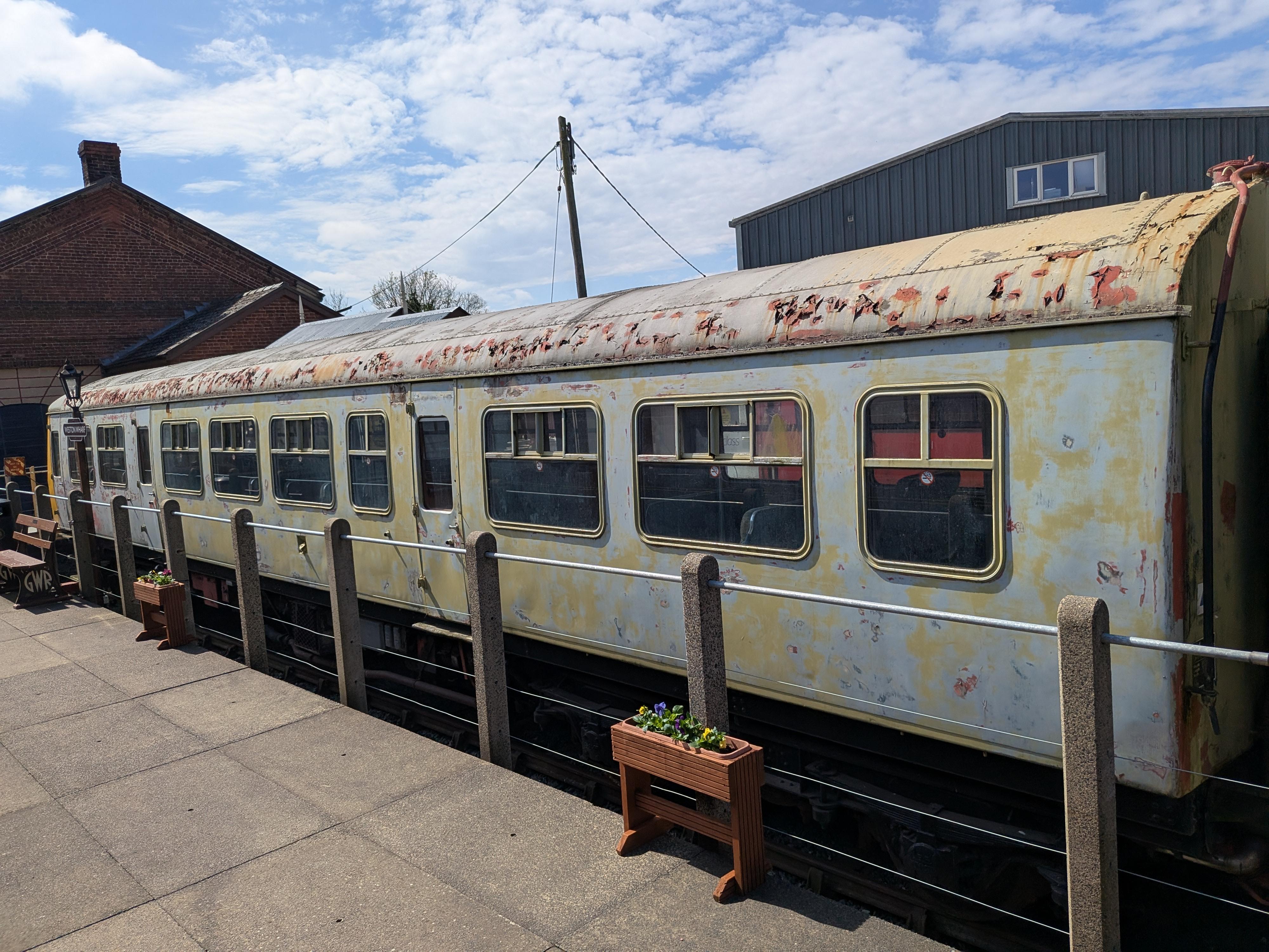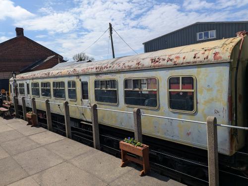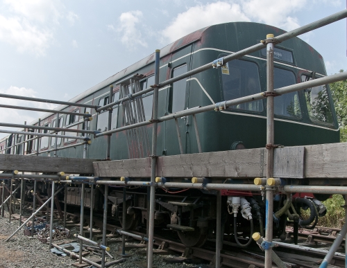 Was in Unit 101687 ex-Strathclyde. To Cambrian Heritage Railway, Llynclys 07/04 as main running pair with 51205 (q.v.). 08/06: exterior and interior completely refurbished - BR multiple unit green livery. 09/19: refurbishment work begun. 05/24: moved from Llynclys site to Oswestry Weston Wharf station - exterior paintwork poor but no apparent rust; interior intact but needs a deep clean. 04/25: work under way to improve cosmetic appearance of this vehicle. |