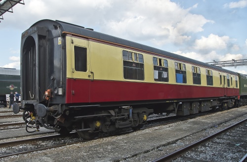 P 1981 SLOA. To Pullman Rail 1984; Lavender Line ca 1989. Telford 11/01. To GCR (Nottingham) 7/02. Heavily vandalised 3/03. Rebuilt using parts from 21034 and operational by 05/08. To A1 Loco Trust and to Darlington 09/08 for future use as locomotive support coach - by 12/11 doing this for 60163 'Tornado'. Network Rail registered. Restored with dual brakes. 09/20: still in operation as support coach for 60163. By 07/21: livery changed from BR crimson lake and cream to BR maroon. 10/21: still in operation as support coach for 60163. By 09/22: at Nemesis Rail, Burton upon Trent. By 08/23: moved to Great Central Railway to be reunited with 'Tornado'. 05/25: still in use as 'Tornado' support coach. |