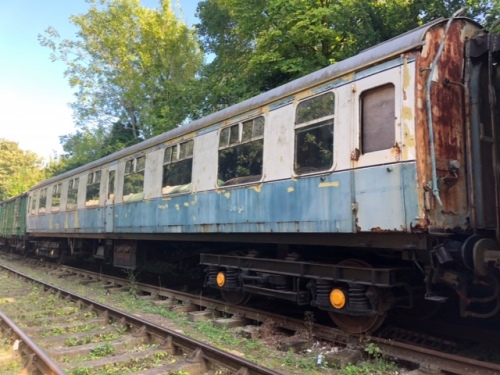 P 1987 by VSOE. 'Internal User' vehicle at Stewarts Lane - but to Cranmore by 09/05. B4 bogies (originally B1). BR Rail Blue and Pearl grey livery. Stored awaiting restoration. By 03/18: moved from East Somerset Railway to West Somerset Railway. 08/23: moved from West Somerset Railway to Mid Hants Railway. |