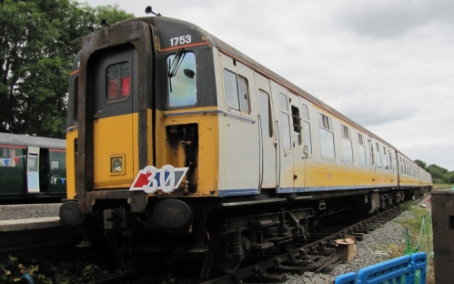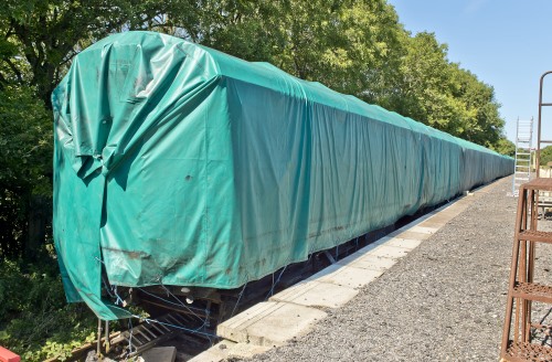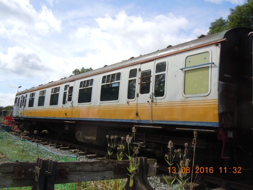 P 12/04. To Ellough Airfield, Beccles, Suffolk 01/05 - no public access. With 62043, 70721 and 76102 (qv) made up Class 421 4-CIG Unit No. 1753. Sole surviving Phase 1 build unit. By 05/15: all to Finmere Station, Newton Purcell, Oxfordshire - disused GCR station between Brackley and Quainton Road - a private site: no unauthorised access. By 08/17: 4-CIG unit and buffet all now sheeted - see second additional photo below. 04/20: moved to Nemesis Rail (Finmere Station site cleared). 02/25: confirmed still in situ. |