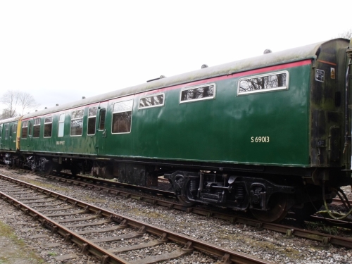 Ashford/Eastleigh. P as refurbished at Swindon. 07/14: one side repainted in BR(SR) green livery, the other still in Network South East livery. Being rebuilt to 'as built' condition and mainline standard as part of CEP 7105 set. By 09/16: to Epping Ongar Railway. 04/22: sold by EPB Preservation Group and, 08/22, moved from Epping Ongar Railway to Chinnor and Princes Risborough Railway. By 01/25: moved from Chinnor and Princes Risborough Railway to Reid Freight Services site at Cockshute Sidings, Stoke-on-Trent. 05/25: moved from Cockshute Sidings to Warcop, Eden Valley Railway. |