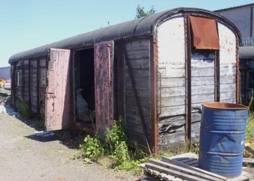 Grounded in industrial storage compound (Macsalvors), Pool, Cornwall. Roof re-felted in recent years, but bodywork deteriorating. Number carried on underframe. c.2019: this body and that of PMVY SR 2120 (qv) moved from Pool, this one to The Thatched Cottage, Canterbury Road, Selsted, Kent (visible from the road). 08/25: confirmed still in situ. |