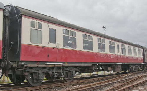 P 1983 by Scottish Royal Preservation Society, at Falkirk until 1988, then at Perth until 1990. Vacuum brakes, steam heat. Branch, spare. Stored/catering. 04/24: sold to Embsay and Bolton Abbey Steam Railway and moved there from Bo'ness 05/24. 11/25: outshopped - fitted with wide centre doors for wheelchair access and repainted (still in BR crimson lake and cream livery). |
