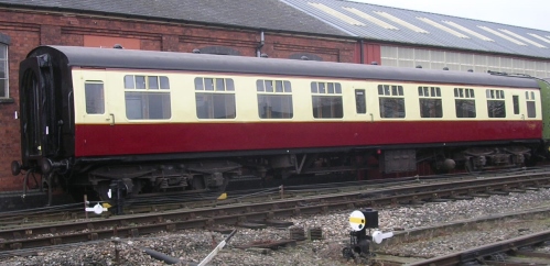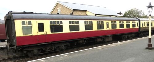 P 1984. Long-term body repairs and interior refurbishment completed by early 2003. 12/18: from North Yorks Moors Railway to Gloucesteshire Warwickshire Railway on loan. 02/19: steam heating and brake overhaul completed and now in service. 30/06/2020: returned to North Yorks Moors Railway. 04/21: now back at Gloucesteshire Warwickshire Railway (resuming 10 year loan). 01/24: repaint completed - still in BR crimson lake and cream livery. |