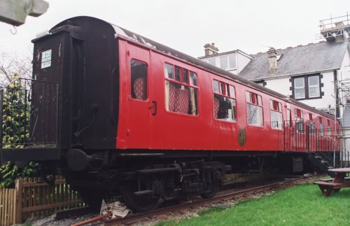 P 09/91 Bluebell Railway. Then to Riviera Trains (at East Somerset Railway) by 10/95: spares removed, and body (after stripping and conversion to hotel/restaurant use) sold c05/96 to Old Station Inn, Hallatrow, Somerset: externally crimson; connecting door to Inn; now on Commonwealth bogies. |